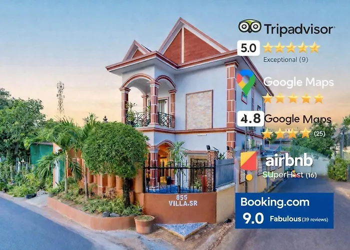 L'hotel 855 Villa S R Siem Reap propose un hébergement avec une terrasse à 6 minutes à pied de Mr Ly Gym and Boxing. Bénéficiant d'une piscine, cet hotel 4 étoiles est niché non loin d'attractions naturelles telles que la Résidence royale.